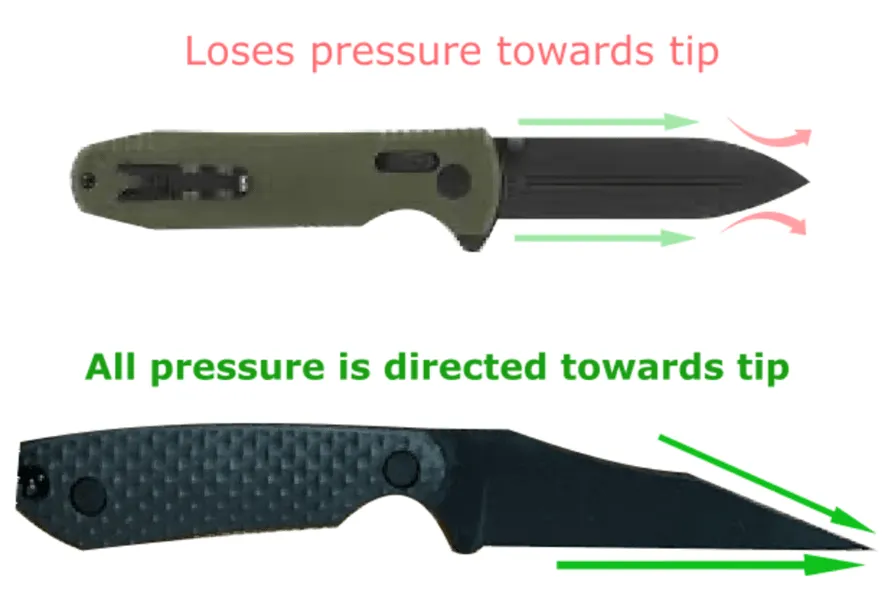 This makes stabbing effortless because all the pressure is directed towards the tip.